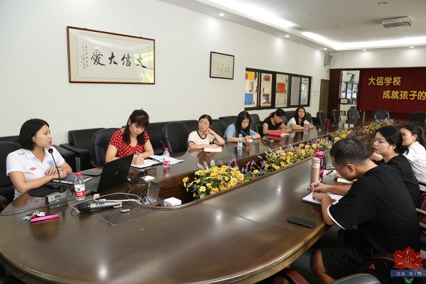 8月28日上午,德育處崔士強(qiáng)主任為所有新教師進(jìn)行了學(xué)校德育常規(guī)管理和少先隊(duì)工作的詳細(xì)介紹。崔主任介紹了大信學(xué)校的先進(jìn)的德育理念——適合學(xué)生的教育;多元化的德育活動(dòng)——“大信小舞臺(tái)”、“消防逃生演練”等;強(qiáng)而有力的師資隊(duì)伍——每位班主任教師勤勤懇懇的工作和付出;制度的保障——健全的領(lǐng)導(dǎo)制度、有效的德育常規(guī)制度和少先隊(duì)工作指導(dǎo)制度;常規(guī)活動(dòng)——升旗儀式、獻(xiàn)愛心獻(xiàn)溫暖等。下午,由高靜主任和劉陽(yáng)老師為全體新教師開展了關(guān)于班主任班級(jí)建設(shè)及特色班集體建設(shè)的專題培訓(xùn)。首先高靜主任用“部分之和大于整體”這樣一個(gè)實(shí)例向大家講解如何優(yōu)化班主任的工作,并提出了具有針對(duì)性,可操作性的具體對(duì)策。接著,她又用“頂層設(shè)計(jì)”這一理念來解釋如何建立班集體培養(yǎng)的目標(biāo)。最后,她又用自己扎實(shí)的專業(yè)知識(shí)和豐富的教學(xué)經(jīng)驗(yàn),向我們闡述了如何制定班級(jí)常規(guī),如何進(jìn)行常規(guī)管理。緊接著由獲得中山市特色班集體的劉陽(yáng)老師向所有新教師進(jìn)行如何建立“特色班集體”的培訓(xùn)。首先,她向我們介紹了中山市特色班集體的種類。然后,結(jié)合了學(xué)校的“一班一特色”這一辦學(xué)理念進(jìn)行了針對(duì)性的講解。最后,劉老師給我們提出了幾點(diǎn)有效的小建議,例如:挖掘身邊資源——家長(zhǎng)、學(xué)生、科任老師等,建立課程體系——基礎(chǔ)性課程,提高性課程和實(shí)踐課程。