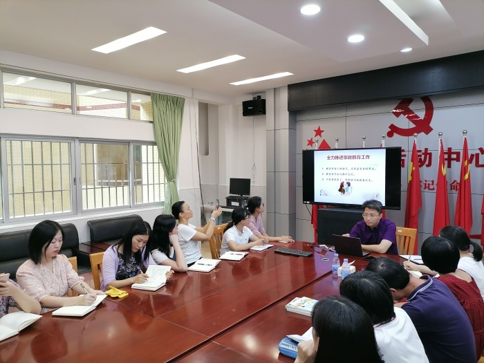 本次活動邀請了開發(fā)區(qū)資深德育專干、開發(fā)區(qū)四小德育副校長楊勇強(qiáng),到校做主題講座 “一年可以做什么?”楊勇強(qiáng)校長以支教教師周虎老師的支教經(jīng)歷和廣東省名班主任小林老師的成長經(jīng)歷,生動感人的視頻讓班主任們看到了他們的教育情懷和教育藝術(shù),引導(dǎo)班主任們體會“一年不是太長,但可能會改變你的余生?!苯又?,楊校長以自身的經(jīng)歷給班主任們支招。招數(shù)一:全力推進(jìn)家庭教育工作。讓家長做孩子教育的責(zé)任人,幫助家長做好“基本六要”;招數(shù)二:加強(qiáng)心理健康教育。做一個有心人,時刻關(guān)心愛護(hù)學(xué)生,關(guān)注重視成長環(huán)境!最后,楊校長總結(jié)共勉:在愛護(hù)學(xué)生的同時,保重自己的身體;在繁重的工作中,保持良好的心態(tài),享受職業(yè)的幸福感;工作與家庭要兼顧。