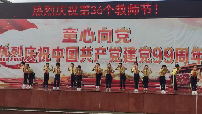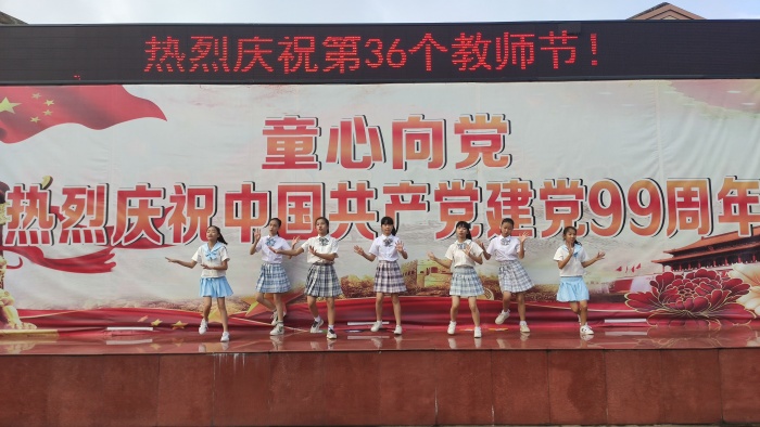 2020年9月10日上午,開發(fā)區(qū)第三小學(xué)一場簡短而又富有深意的教師節(jié)慶祝活動拉開帷幕。過去一年里,在老師們的努力下開發(fā)區(qū)第三小學(xué)的教學(xué)質(zhì)量得到很大的提升,涌現(xiàn)出一批教學(xué)質(zhì)量先進(jìn)骨干教師。借此節(jié)日,三小表彰了這一批優(yōu)秀的教育工作者,三小唐秉晶校長和陳平副校長為他們頒發(fā)了獎狀。表彰儀式結(jié)束后,少先隊員們奉上了精彩的表演節(jié)目。由二(1)中隊隊員表演的一首手語舞《聽我說,謝謝你》,一雙雙靈巧的小手配合著音樂的節(jié)奏通過手語動作去描述著想說的話“謝謝你,老師們,你們真的辛苦了!” 勾起了大家對恩師的體貼、心疼、勸慰、感恩、祝愿等等美好的感情。四(4)中隊隊員們演唱“每當(dāng)我走過老師窗前”這首耳熟能詳?shù)母枨宕嗟耐曉诖蟛賵鲰懫?,全校師生洋溢著愉快的心情沉醉在歌聲中。演唱結(jié)束,臺上的隊員一起用響亮的聲音祝福老師們。最后一個節(jié)目是由六(3)中隊表演的舞蹈“向快樂出發(fā)”,臺上的隊員熱情四射,賣力演出,她們用青春活力向老師致敬,贏得了全場師生的熱烈掌聲,慶?;顒舆_(dá)到了高潮。