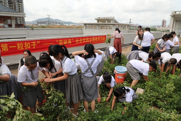 開發(fā)區(qū)香暉園小學謝雨軒老師作了“小小織巢鳥”勞動教育特色班級成果匯報。匯報包括了特色班的創(chuàng)建意圖、創(chuàng)建過程、創(chuàng)建成果三個環(huán)節(jié),呈現(xiàn)的方式多樣化,既有學生的現(xiàn)場勞動展示,又有大量圖片展示,通過詳細的介紹,讓與會教師了解了勞動教育實施的途徑和方式。如何在學校開展勞動教育課,這是與會老師最迫切了解的問題。謝雨軒老師以《收花生、摘辣椒》為主題,呈現(xiàn)了一節(jié)勞動教育示范課。謝老師先在課堂介紹了收花生、摘辣椒的技巧,然后讓學生帶著學到的勞動方法移步學校勞動基地——“天空農(nóng)場”進行勞動實踐活動。學生們分成小組,親身體驗收花生、摘辣椒的過程。學生們出力出汗,團結(jié)互助,收獲滿滿,整個勞動過程沉浸在一片歡聲笑語中。
