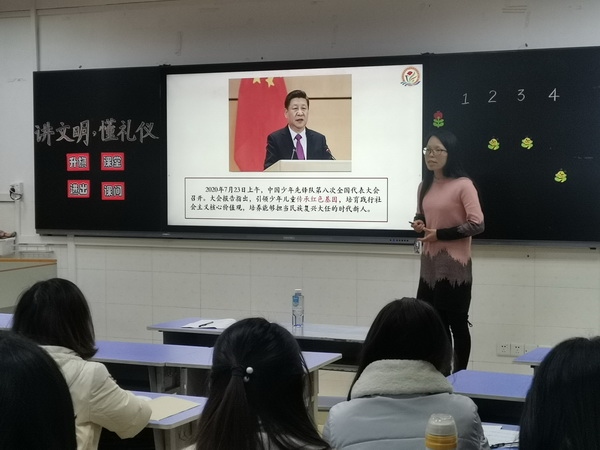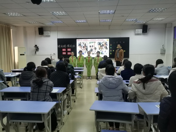 活動(dòng)一開(kāi)始,香暉園小學(xué)“螢火蟲”工作室成員孫嘉優(yōu)老師攜同一(2)班的孩子們?yōu)榇蠹規(guī)?lái)了班會(huì)課《講文明,懂禮儀》,孫老師用富有感染力的語(yǔ)言,結(jié)合孩子生活實(shí)際,從課間、升旗、進(jìn)出辦公室等方面讓同學(xué)們明白了“講文明,懂禮儀”的重要性。隨后,該校陳澤湖校長(zhǎng)為黃圃新地中心小學(xué)的同仁們介紹了學(xué)校的關(guān)懷教育理念,陳校長(zhǎng)從學(xué)校的核心追求到培養(yǎng)目標(biāo),從辦學(xué)目標(biāo)到校風(fēng)學(xué)風(fēng)作了詳細(xì)的講解,在座嘉賓不時(shí)點(diǎn)頭表示認(rèn)同。緊接著,該校周溫馳老師和五6班學(xué)生代表為大家分享了“勇于擔(dān)當(dāng)肩負(fù)使命,勤奮自律踐行愛(ài)國(guó)”小啟超特色班創(chuàng)建歷程,何小蘭老師為大家展示了《尋訪拳拳中國(guó)心,爭(zhēng)做火炬“小紅人”》的少先隊(duì)活動(dòng)說(shuō)課。新地中心小學(xué)的老師們紛紛表示:香暉園小學(xué)展示的這些活動(dòng)給他們開(kāi)展班主任工作提供了范例,是他們學(xué)習(xí)的榜樣。