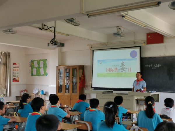 在下午的全校班隊課上,各班主任再次對同學(xué)們進行了關(guān)于禁毒的專題教育,讓同學(xué)們更深刻地認識毒品的種類及危害,更好地教育學(xué)生遠離毒品。