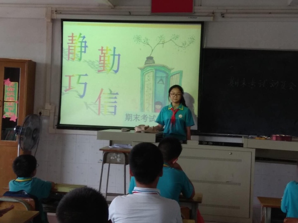 本學(xué)期由于受到新冠疫情影響,前段時間同學(xué)們都宅在家進(jìn)行線上學(xué)習(xí),5月份才返校復(fù)學(xué),按上級要求,語文、數(shù)學(xué)和英語學(xué)科教學(xué)要從零開始,雖然時間短暫,但各學(xué)科都能按制定的教學(xué)計劃如期完成新授內(nèi)容,并預(yù)留了一周半左右的時間進(jìn)行復(fù)習(xí)。7月6日的班隊課上,民眾中心小學(xué)各班都進(jìn)行了期末考試動員會。