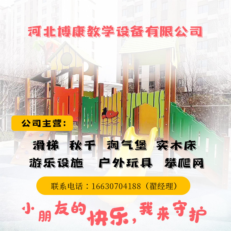 河北博康教學設備有限公司經銷批發(fā)的淘氣堡、滑梯、蹦床、轉椅、幼兒園輔助用品、游樂設施、