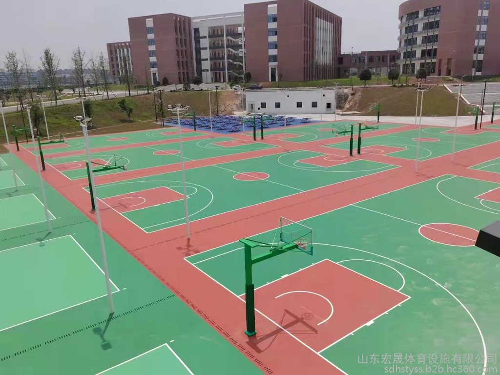 宏晟體育款式定制 硅pu球場、塑膠球場、丙烯酸籃球場、硅pu塑膠球場,防水抗滑專業(yè)施工團隊安裝塑膠跑道工程