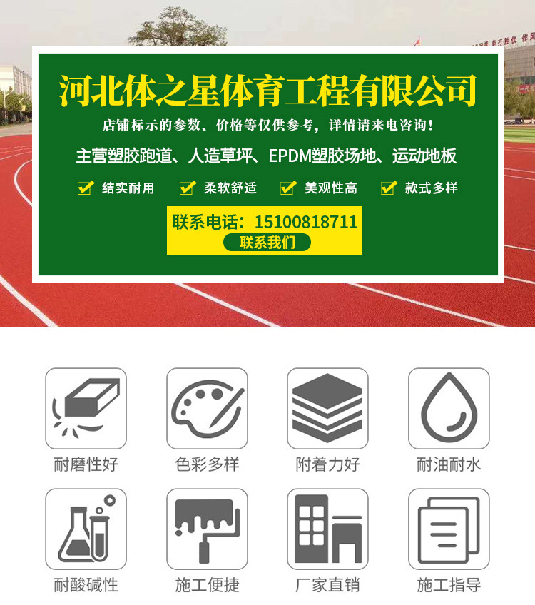 主營透氣型跑道材料、混合型跑道材料、三元乙丙橡膠顆粒材料、硅PU球場材料、PU塑膠材料、預(yù)制型卷材、人造草坪TPE顆粒等