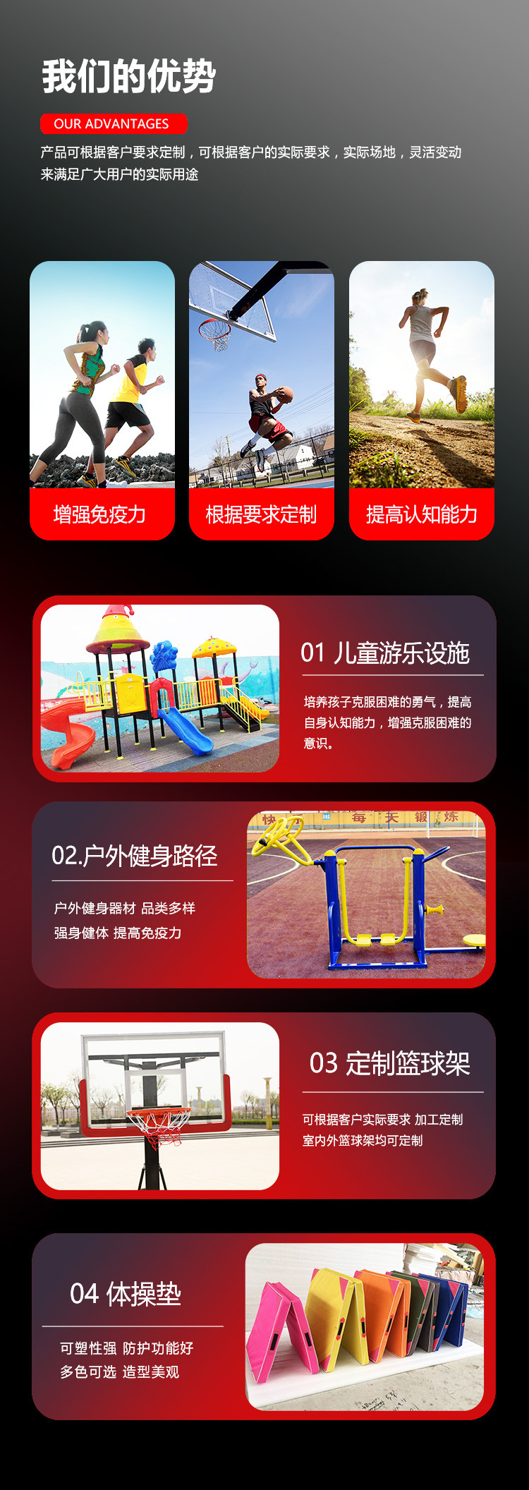我公司主要經(jīng)營各種籃球架、羽毛球、乒乓球、排球、足球、網(wǎng)球、體操訓練器械、健身器材、塑膠
