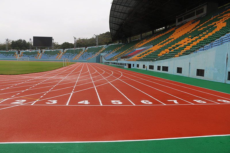 梅縣曾憲梓體育場自結(jié)紋混合型400m塑膠跑道