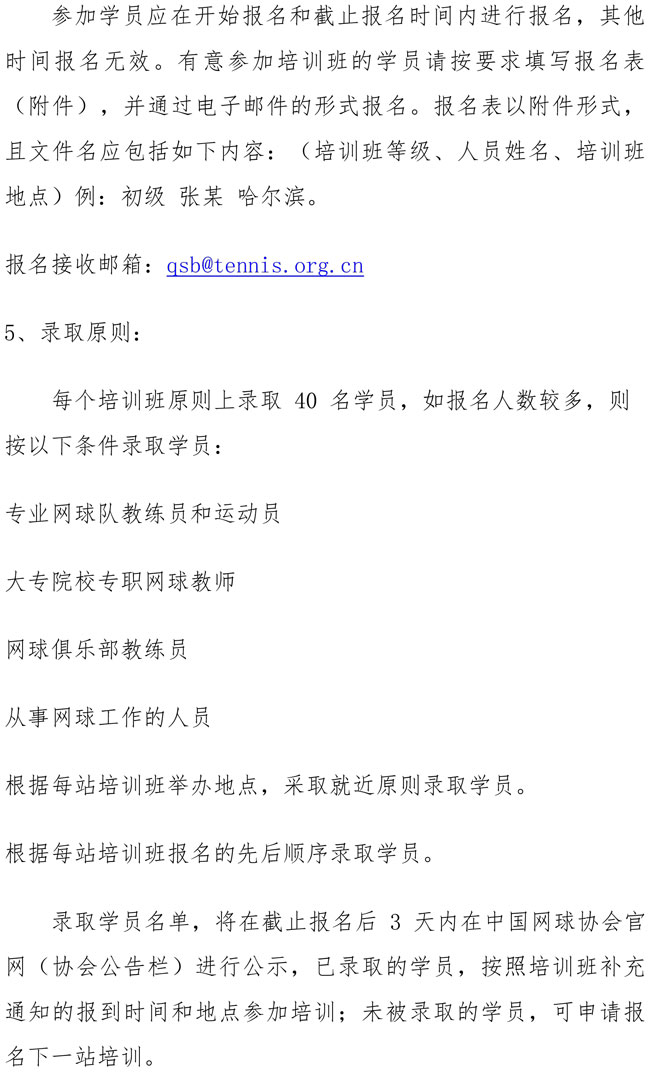 2019年中國網(wǎng)球協(xié)會初級、中級教練員培訓(xùn)班報名表