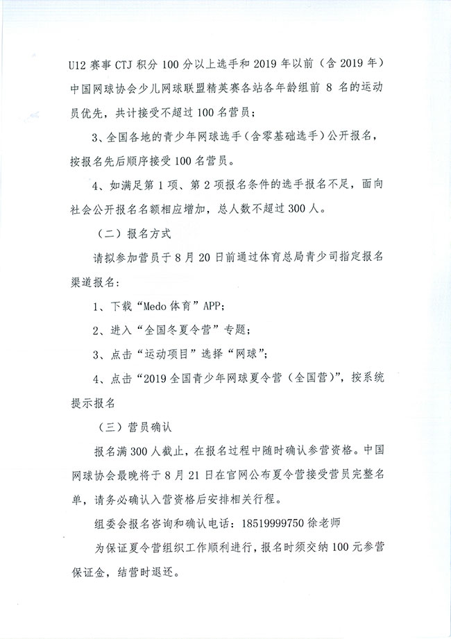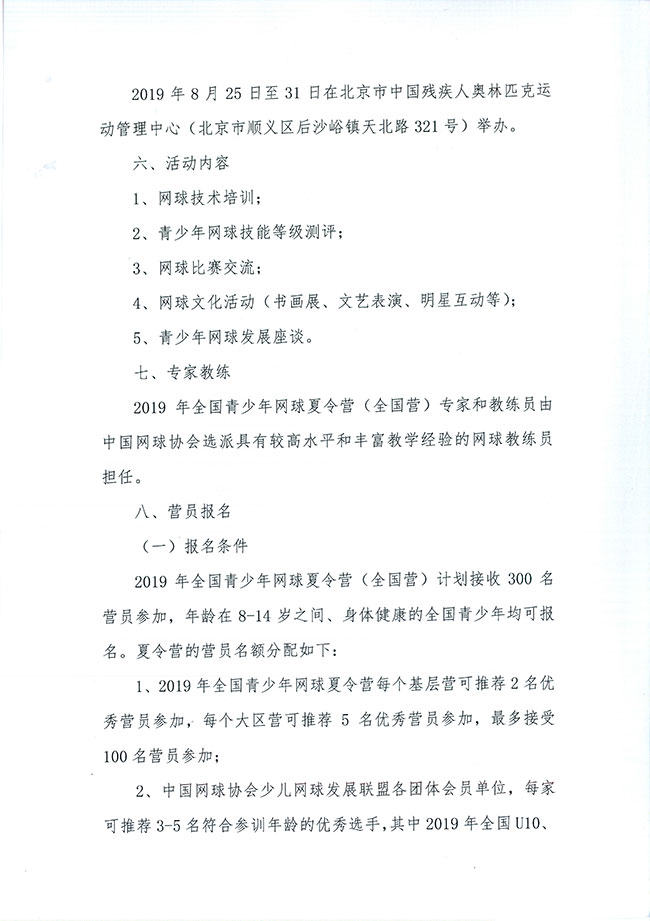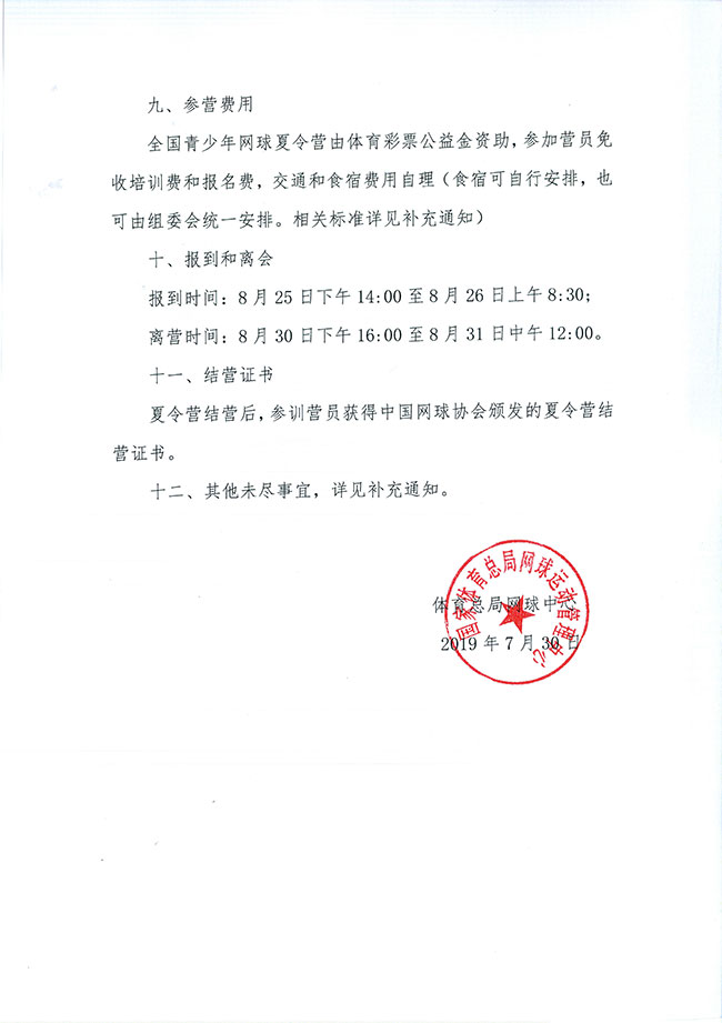 關(guān)于舉辦2019年全國(guó)青少年網(wǎng)球夏令營(yíng)(全國(guó)營(yíng))的通知