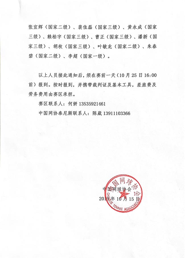 關(guān)于選派2019年中國(guó)業(yè)余網(wǎng)球公開(kāi)賽深圳皇冠賽技術(shù)官員的通知