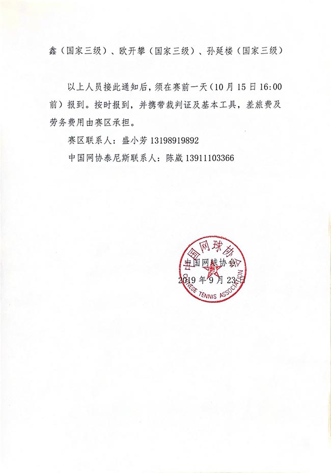 關(guān)于選派2019年中國業(yè)余網(wǎng)球公開賽??阢@石賽技術(shù)官員的通知