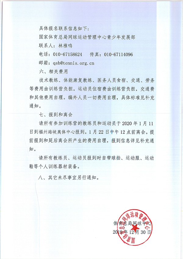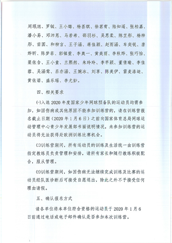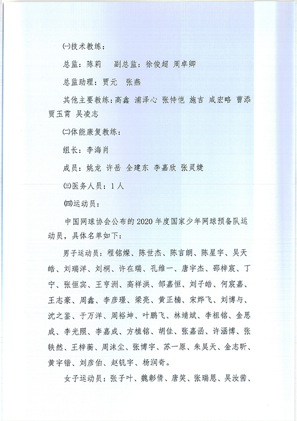 關(guān)于公布2020年國家青少年網(wǎng)球隊(duì)相關(guān)人員組成名單的通知