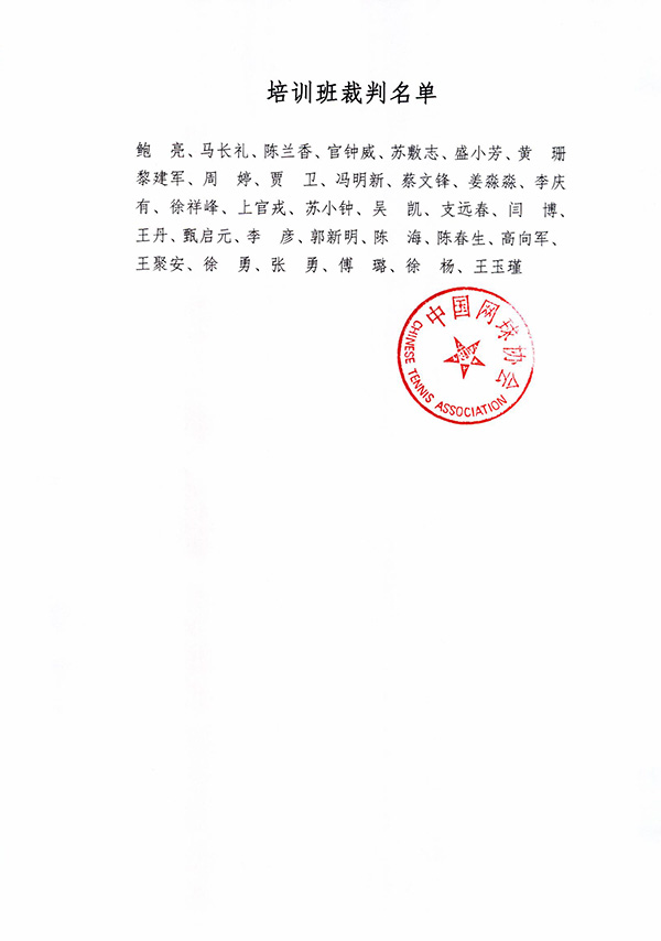 關(guān)于舉辦2019年中國網(wǎng)球協(xié)會裁判長培訓(xùn)班補充通知(上海)