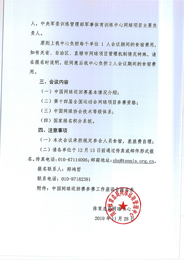 關于召開中國網球巡回賽參賽工作座談會的通知