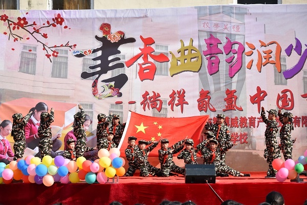 校長(zhǎng)致辭后,元旦匯演在大家的期盼聲中如約而至,如一年級(jí)同學(xué)的舞蹈《我是一顆跳跳糖》讓會(huì)場(chǎng)的師生和家長(zhǎng)們感受到了童年多姿多彩、無(wú)盡的歡樂(lè)與稚嫩的夢(mèng)想;二年級(jí)歌伴舞《聲聲慢》把大家?guī)нM(jìn)了優(yōu)美的歌聲中;二、三年級(jí)的舞蹈《紅星閃閃》、《小小士兵,傳承紅色基因》迅速帶動(dòng)了全場(chǎng)的氣氛,把同學(xué)們帶回到了久遠(yuǎn)的革命年代;五、六年級(jí)同學(xué)表演的相聲《珍惜時(shí)間》、《如此學(xué)生》,惟妙惟肖,令人忍俊不禁,同學(xué)們?cè)诠笮χ忻靼祝簳r(shí)光易逝,年華易老,要珍惜時(shí)間,認(rèn)真學(xué)習(xí);四年級(jí)同學(xué)表演的武術(shù)《男兒當(dāng)自強(qiáng)》精神抖擻,虎虎生威;讓同學(xué)們感受到了這獨(dú)有的東方氣息的文化瑰寶;他們表演的舞蹈《龍拳》,剛?cè)岵?jì),充滿民族風(fēng)情;教師們的歌唱《遠(yuǎn)走高飛》展現(xiàn)了老師們的抱負(fù);藝體科組帶來(lái)的《掌控》、《中國(guó)字畫詩(shī)歌情》等系列舞蹈將運(yùn)動(dòng)和舞蹈、書法和舞蹈融洽的銜接在一起,體現(xiàn)了青春與激情舞動(dòng),活力與動(dòng)感融合,帶來(lái)了書香的氤氳氣息;六年級(jí)同學(xué)吟誦的《詩(shī)經(jīng)·小雅·鹿鳴》,臺(tái)上與臺(tái)下同學(xué)一起互動(dòng),讓師生們感受到了古人宴請(qǐng)嘉賓的喜悅心情,也讓到會(huì)的嘉賓感受到了恒美學(xué)校師生友好對(duì)待客人的赤誠(chéng)之心;合唱組的同學(xué)一展歌喉《再一次出發(fā)》和《starsi shall find》,柔美舒緩,表達(dá)了對(duì)生活得贊美和熱愛(ài)之情……師生們用活潑的旋律、優(yōu)美的舞姿、鏗鏘的聲音展示出了恒美學(xué)校的爛漫風(fēng)采。
