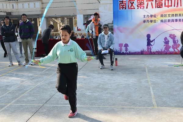 2019年12月10日,在恒美學校的操場上熱火朝天,人聲鼎沸,這里正在舉行兩年一度的南區(qū)第六屆中小學生跳繩比賽。