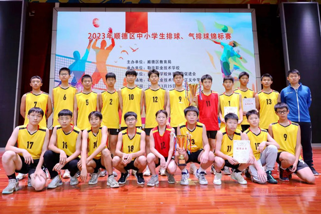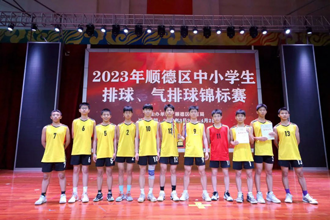 2023年順德區(qū)中小學生排球、氣排球錦標賽,乙組、丙組比賽在江義中學舉行。江義中學共派出四支隊伍參加本次比賽,男子一隊、二隊分別獲得第一名和第三名,女隊獲得第八名。