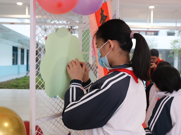 清早,兩只“吉祥兔子”和老師、家委們已經在龍外附小的校門口等候同學們的回歸。洋溢著笑容的同學歡歡喜喜地從“吉祥兔子”的手里接過象征著身體康健、學業(yè)猛進的棒棒糖,認認真真地在心愿墻上貼上自己和家長的心愿卡。