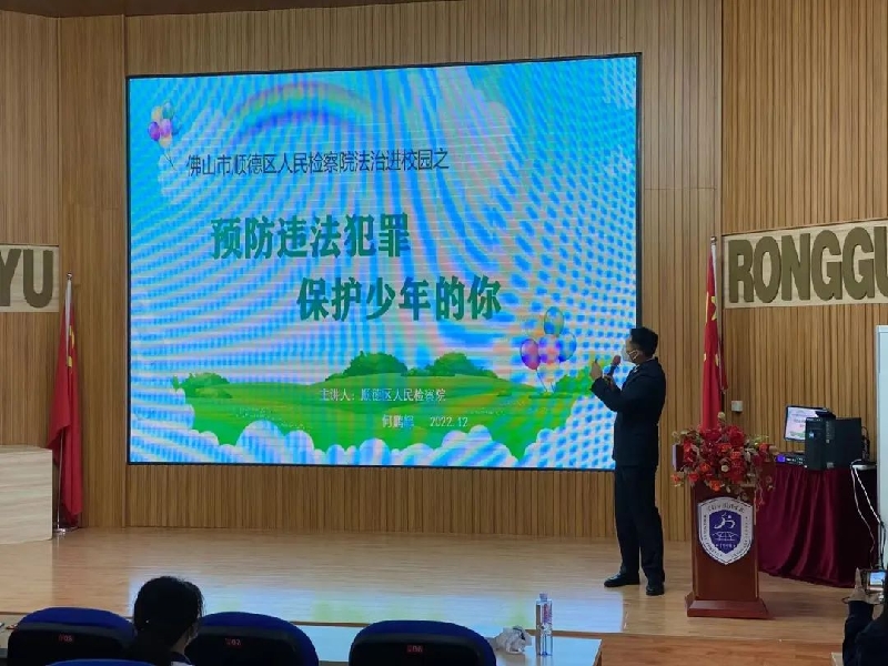 12月16日上午,我校在電教館開展“預(yù)防違法犯罪,保護(hù)少年的你”預(yù)防校園欺凌的講座,講座邀請到佛山市順德區(qū)人民檢察院二級檢察官何鵬輝先生主講。