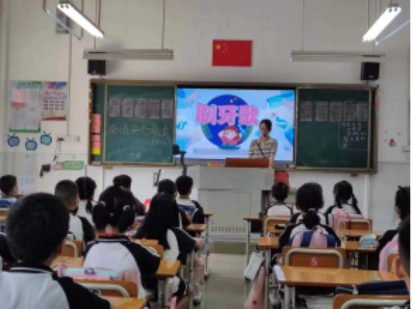 班會(huì)課上,一首由佛山市口腔醫(yī)院推出的原創(chuàng)科普歌曲《刷牙歌》,讓同學(xué)們?cè)谳p快的音樂中,輕松掌握到正確的刷牙方法。