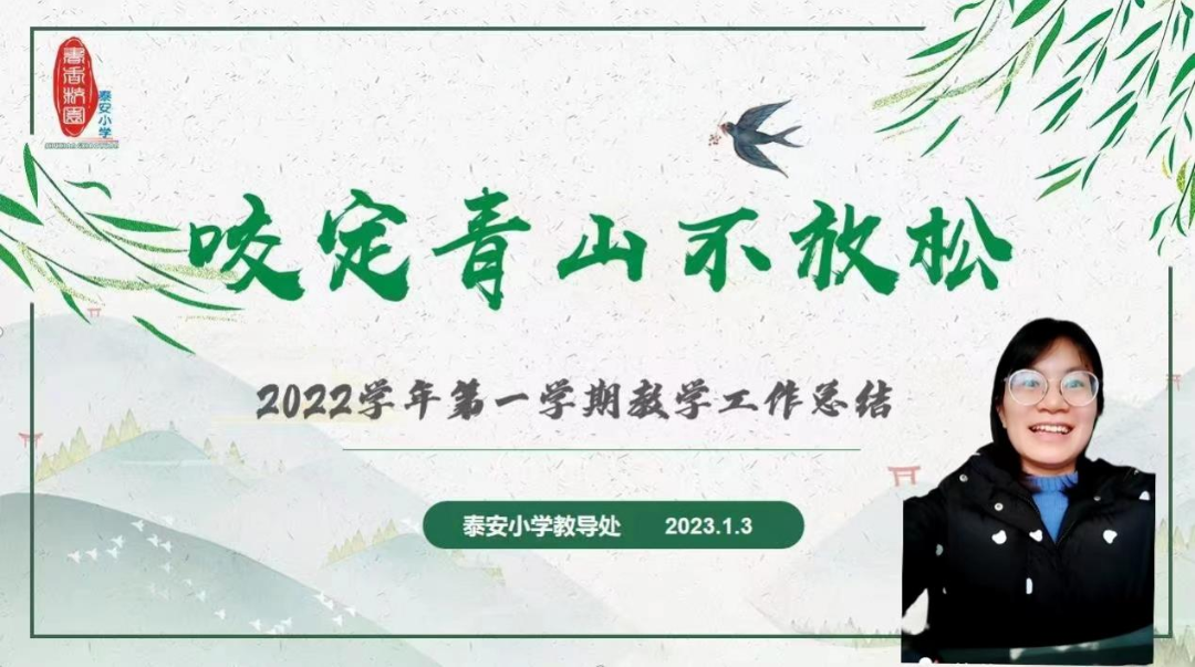 從金秋走到臘月,從寒冬跨過(guò)新春,過(guò)去的一學(xué)期在忙碌而充實(shí)的工作中悄然結(jié)束。2023年1月3日,泰安小學(xué)舉行了2022學(xué)年第一學(xué)期教學(xué)工作總結(jié)線上會(huì)議。 總結(jié)會(huì)上,教務(wù)處何少森主任總結(jié)了本學(xué)期的教學(xué)工作開展情況,首先,何主任總結(jié)了本學(xué)期學(xué)校開展的重點(diǎn)工作,從開學(xué)初的科組長(zhǎng)和級(jí)長(zhǎng)會(huì)議的順利開展,再到每年“翠竹杯”的順利進(jìn)行,也展示了這學(xué)期學(xué)校和老師們獲得的可喜的成績(jī)和進(jìn)步,肯定了全體教師們的辛勤付出,鼓勵(lì)老師們?cè)俳釉賲枴⒂聞?chuàng)佳績(jī)。同時(shí),也提出工作中我們有待提高的地方,要求老師們?yōu)閭€(gè)人專業(yè)發(fā)展和學(xué)生全面發(fā)展做到厚積薄發(fā),多自省、多思考、多學(xué)習(xí)。 隨后,各個(gè)科組長(zhǎng)分別進(jìn)行科組工作總結(jié)匯報(bào)。依次由高語(yǔ)科組長(zhǎng)李小峰老師、低語(yǔ)科組長(zhǎng)王萍老師、數(shù)學(xué)科組長(zhǎng)劉淑蒂老師、英語(yǔ)科組長(zhǎng)溫桂花老師、綜合科組長(zhǎng)覃江桃老師進(jìn)行科組工作總結(jié),他們圍繞教研工作開展、教師教學(xué)常規(guī)工作、教師專業(yè)發(fā)展、工作亮點(diǎn)和不足之處等進(jìn)行全方面的工作總結(jié),在簡(jiǎn)單而隆重的發(fā)言交流中提升科組建設(shè)。 回眸凝望,我們初心不變;展望未來(lái),我們信心滿滿。帶著咬定青山不放松的精神,泰安小學(xué)的老師們將繼續(xù)堅(jiān)守教育本心,帶領(lǐng)學(xué)生乘風(fēng)破浪。