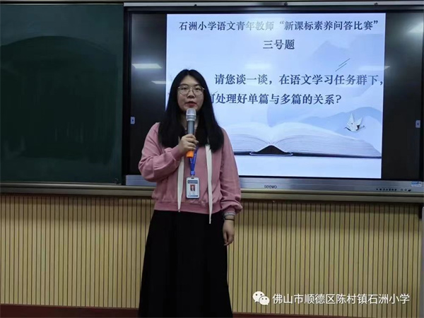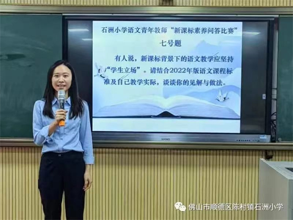 一次歷練,一次成長(zhǎng)。練潔珍老師帶來一節(jié)有序、有趣、有智的《小豬變形記》繪本閱讀讀后分享課,讓同學(xué)們?cè)谙胂蟮氖澜缋飷凵祥喿x,享受閱讀的快樂。在“青年教師新課標(biāo)素養(yǎng)問答”比賽中,選手們落落大方,各有巧思,在極短的時(shí)間內(nèi)結(jié)合教學(xué)經(jīng)驗(yàn)陳述自己對(duì)新課標(biāo)的理解,展現(xiàn)了自身豐富的知識(shí)儲(chǔ)備和超強(qiáng)的臨場(chǎng)應(yīng)變能力,為提升青年教師專業(yè)素養(yǎng)起到積極促進(jìn)作用。