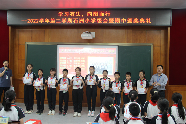 榜樣凝聚力量,信念鼓舞前行。為了更好開展小組合作,激發(fā)學生學習興趣及小組合作學習的積極性,做到互助互學,共同進取。4月27-28日,石洲小學開展級會暨頒獎典禮,級會由級長黎渭興老師、馮梓華老師主持,頒獎典禮分別由馮惠華老師、馮鏡標老師、黃翠興老師和黃靜雯老師主持,學校行政團隊、各年級師生出席本次頒獎典禮。