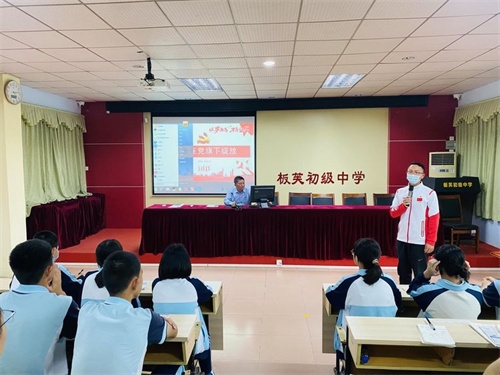 為充分發(fā)揮團(tuán)組織教育青少年的功能,進(jìn)一步加大對團(tuán)員青年、入團(tuán)積極分子的培養(yǎng)教育力度,實現(xiàn)以“黨建帶團(tuán)建”的目標(biāo),4月11日,板芙初級中學(xué)在弘毅樓一樓階梯室舉行“黨支部書記上團(tuán)課”活動。該校黨支部書記、校長吳勇明以《永遠(yuǎn)跟黨走,建功新時代》為題講授團(tuán)課。活動由該校團(tuán)委書記梁博煜老師主持,各班團(tuán)員代表、入團(tuán)積極分子共70多位同學(xué)參加。