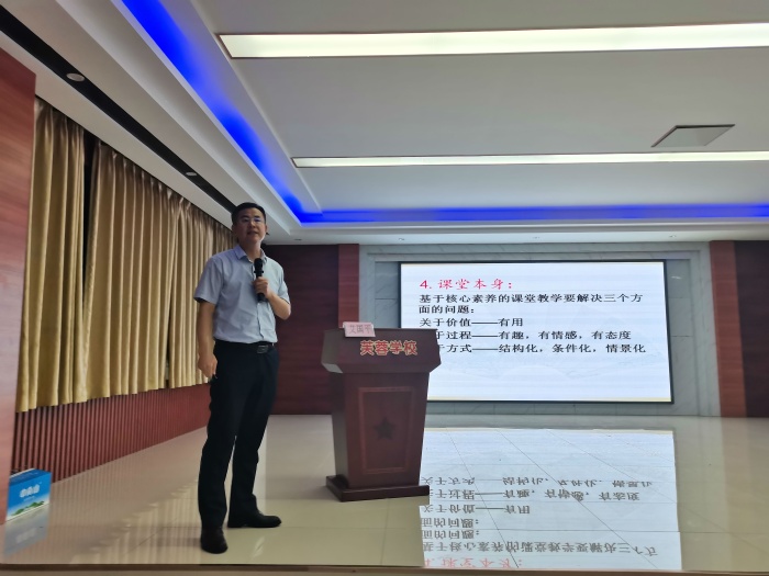 10月27日晚,芙蓉學(xué)校邀請(qǐng)雨露教育集團(tuán)艾國(guó)平校長(zhǎng)進(jìn)行了關(guān)于《基于核心素養(yǎng)的課堂教學(xué)改革》的講座。芙蓉學(xué)校全體主科教師聆聽了本次講座。