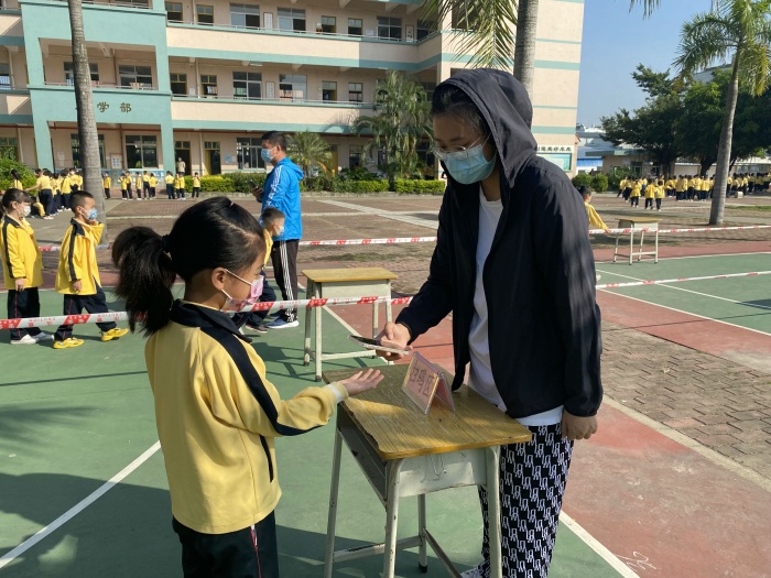 同學(xué)們帶好自己的二維碼,拍好整整齊齊的隊(duì)伍,有條不紊、按要求進(jìn)入監(jiān)測(cè)分區(qū),他們佩戴好口罩,保持好間距,安安靜靜,依次通過(guò)檢測(cè)口,顯得紀(jì)律嚴(yán)明,訓(xùn)練有素。