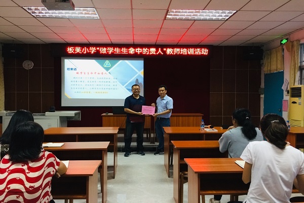 日前,板芙小學(xué)邀請(qǐng)廣東省湯劍文名校長(zhǎng)工作室成員、中山市中小學(xué)德育中心教研組成員、小欖鎮(zhèn)中學(xué)德育中心組組長(zhǎng)、小欖鎮(zhèn)菊城中學(xué)副校長(zhǎng)林木茂走進(jìn)學(xué)校,開(kāi)展教師專(zhuān)業(yè)發(fā)展培訓(xùn)活動(dòng)。活動(dòng)旨在引導(dǎo)教師們?nèi)绾卧跁r(shí)代潮流中進(jìn)行自身專(zhuān)業(yè)成長(zhǎng),融入學(xué)校教育,更新育人觀念,提高教育教學(xué)質(zhì)量,呼吁教師們做一名“心中有愛(ài),逐光而行” 的教師。