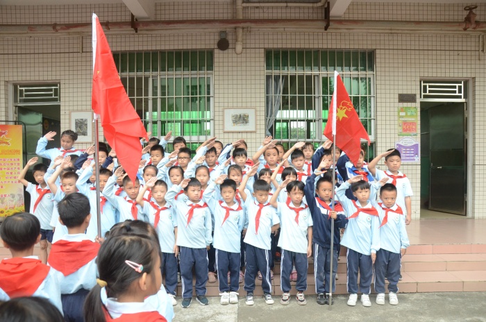 入隊儀式隨著《中國少年先鋒隊隊歌》的歌聲正式拉開序幕,少先隊輔導員王利勇老師宣布了入隊決定。通過分批入隊,本次又有130名新隊員光榮的加入了少先隊組織,這是他們光榮和幸福的時刻!決定宣布之后,六年級優(yōu)秀少先隊員代表為新少先隊隊員佩戴了鮮艷的紅領巾,此刻在鮮艷的隊旗下,全體少先隊員們的莊嚴宣誓響徹大涌南文小學校園的上空。在大隊輔導員的帶領下,少先隊員們大聲呼號:“時刻準備著”,表明為共產(chǎn)主義事業(yè)貢獻力量的決心。