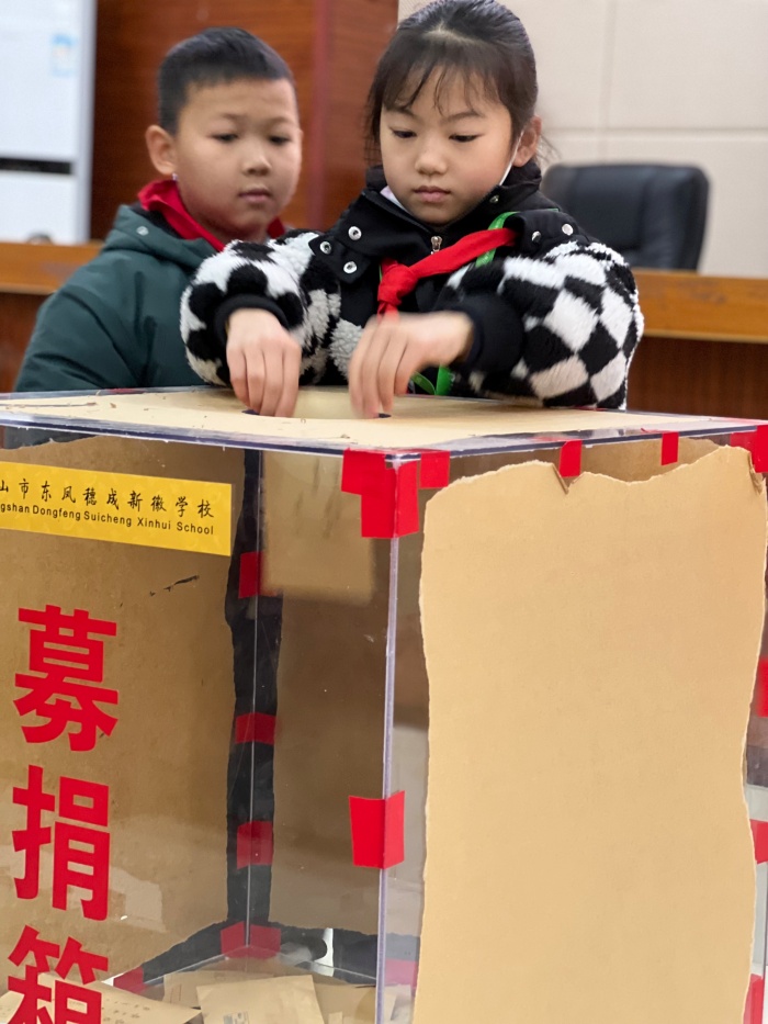 本次活動在校長肖曉的帶領下,全體行政、各教研組代表、各班學生代表將一筆筆善款放進募捐箱內。他們用自己的實際行動詮釋了一份奉獻、一份感恩。積少成多,聚沙成塔,一份愛心,一份關懷,足以點燃一個孩子的希望。
