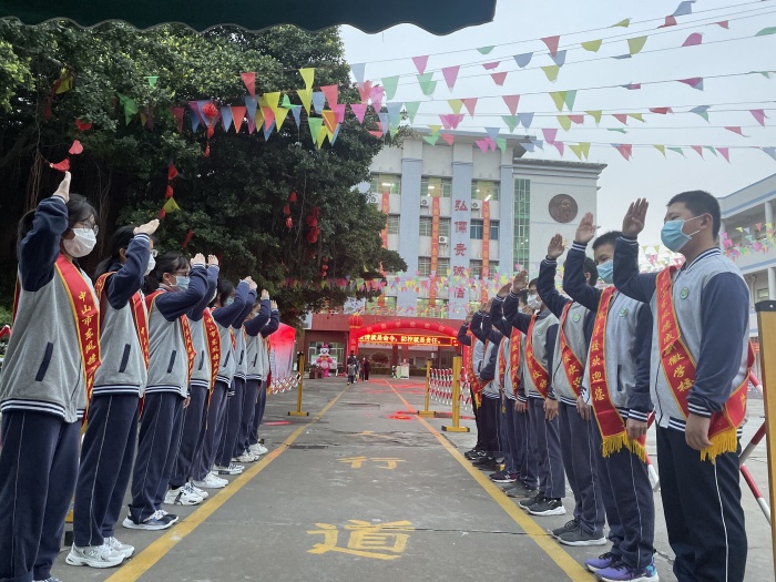 六(1)班闕佳爾帶領(lǐng)全體同學(xué)在國(guó)旗下宣誓:認(rèn)真踐行新徽文化素養(yǎng),做到“語(yǔ)言文雅,行為規(guī)范、儀態(tài)端莊”,不負(fù)親人的期盼,不負(fù)恩師的教誨,不負(fù)青春的歲月,鍛煉成為有“新徽”素養(yǎng)的卓越人。