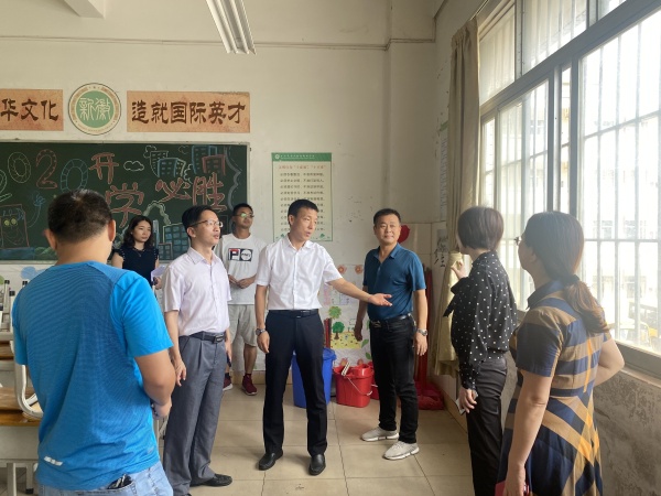 7月18日上午,東鳳鎮(zhèn)鎮(zhèn)長李翔宇、黨委委員劉燕文,在鎮(zhèn)文體教育局、鎮(zhèn)教指中心相關(guān)負責(zé)人的陪同下來到穗成新徽學(xué)??键c,檢查2020年中考準備工作,校長艾時胤、副校長鄧亮、教務(wù)處主任文燕芳陪同檢查。