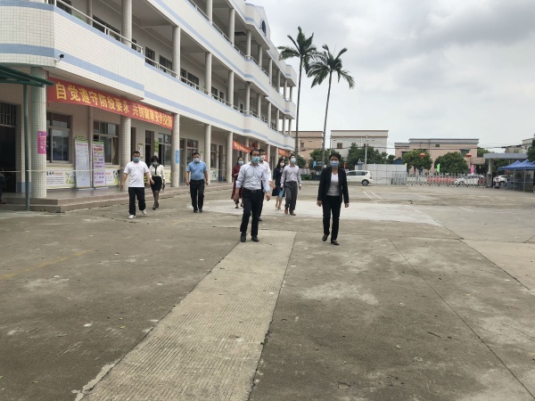 隨后,中山市教育招生考試中心陳齊華副主任、市教體局師資管理科主任科員李海芳一行來到新徽學校,指導學校復學準備工作。