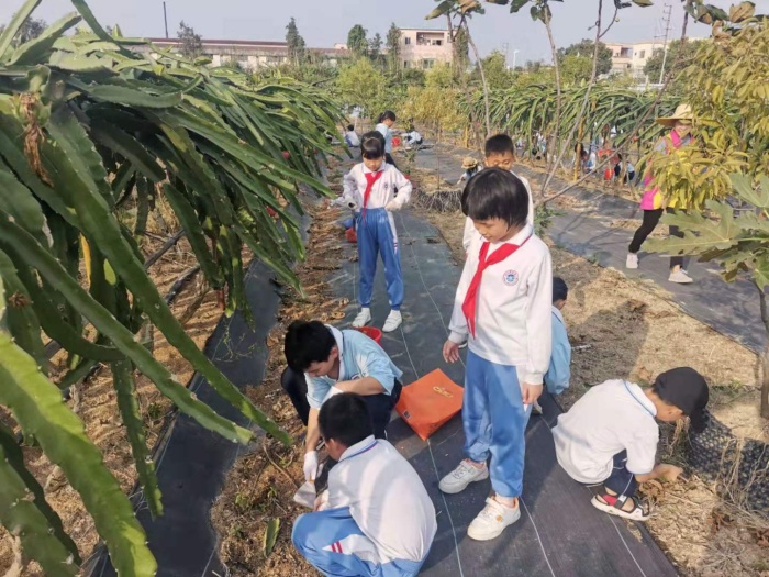 在實踐基地里,同學們先在老師的帶領下,環(huán)繞基地一周,參觀實踐基地的各種植物和小動物。然后由基地負責人分配勞動任務。同學們在班主任的帶領下進入火龍果園種植地除草和清理垃圾。勞動中,同學們分工合作,有的用鐵鍬除草,有的用鏟子松土,有的用小桶運雜草和園區(qū)的垃圾,大家相互配合、團結友愛,都不怕臟、不怕苦,積極地投入到社會實踐活動中。經(jīng)過同學們辛勤的付出,華保生態(tài)園煥然一新,同學們積極、肯干、文明、守紀的表現(xiàn)受到基地負責人的贊賞。