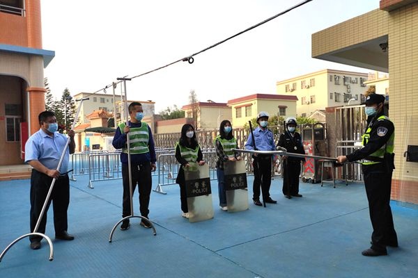 演練前,德育處歐見標(biāo)主任對防暴安全演練做好部署,對安保人員和應(yīng)急小單元成員宣講了反恐防暴知識,并現(xiàn)場演示鋼叉、盾牌等常用器械的使用方法。提醒注意事項,落實流程細(xì)節(jié),以確保演練活動順利開展。
