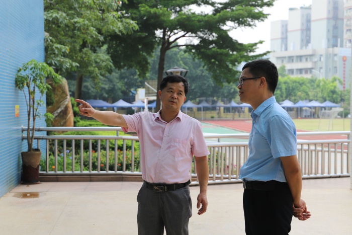 2020年新學(xué)年開學(xué)如期而至,水云軒小學(xué)開學(xué)典禮正緊鑼密鼓地有序進行,全體教職工整裝待發(fā),精神飽滿。9月1日上午,水云軒小學(xué)迎來幾位特殊的守護人——東區(qū)教辦主任許嵐、熊海敏、教辦德育專干盧展紅老師以及東區(qū)社區(qū)衛(wèi)生服務(wù)中心副主任醫(yī)師石國新一行來到水云軒小學(xué)實地了解開學(xué)各項工作的進行情況,一起為孩子們開學(xué)保駕護航。水云軒小學(xué)校長林華志、書記曾文珍、副校長黃曉彤等人熱情隨行并做工作介紹。