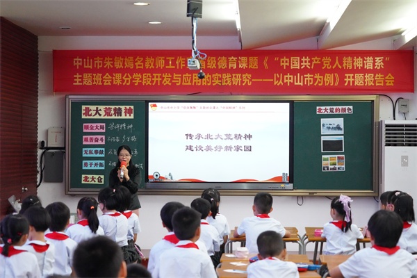 在這莘莘學子揚鞭奮蹄、擂響戰(zhàn)鼓的季節(jié),東區(qū)雍景園小學也迎來了一項盛事。6月30日上午,中山市朱敏嫣名教師工作室省級德育課題《“中國共產(chǎn)黨人精神譜系”主題班會課分學段開發(fā)與應用的實踐研究——以中山市為例》開題報告會在東區(qū)雍景園小學綜合電教室舉行。