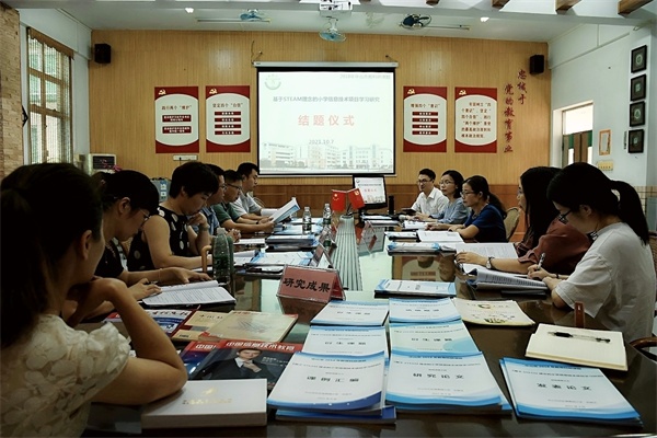 金秋十月,丹桂飄香。2021年10月7日上午,東區(qū)雍景園小學2018年市級課題《基于STEAM 理念的小學信息技術項目學習研究》順利結題。教育部國培計劃專家、廣東省特級教師、市教研室信息技術教研員陳明宏老師,廣東省特級教師、廣東省名師工作室主持人黃偉祥主任,東區(qū)街道教育和體育事務中心譚鵬老師到會對課題進行了結題鑒定,參加本次課題結題會議的還有東區(qū)雍景園小學張卉丹副校長以及課題組全體成員。