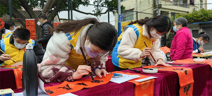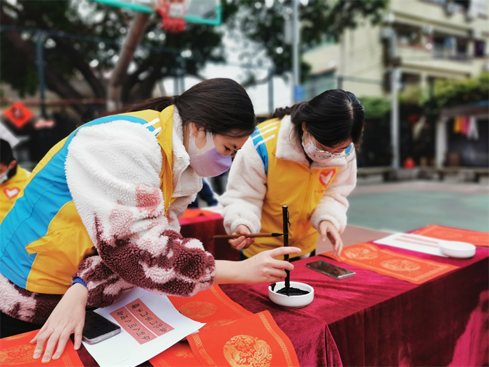 天氣雖然濕冷,但是現(xiàn)場卻是暖意涌動的。紅紅的春聯(lián)、濃濃的祝福、一張張開心的笑臉繪成了一幅幅喜慶祥和的畫面。這次“青春情暖,揮春到家”志愿服務(wù)活動不僅豐富了學生的生活,也讓學生在活動中鍛煉了現(xiàn)場創(chuàng)作書法的心態(tài),更為社區(qū)居民送去了新年的祝福,為喜迎傳統(tǒng)佳節(jié)營造了濃郁的節(jié)日氛圍。