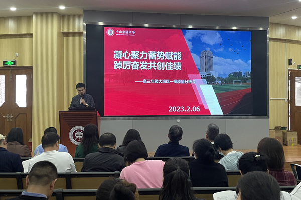 2023年2月6日下午,中山市東區(qū)中學召開了高三年級大灣區(qū)一模質量分析會。會議由高三年級林之主任主持,謝柏芳校長、周雨寰副校長、余平輝副校長、林麗娜副校長等行政領導和全體高三老師參會。