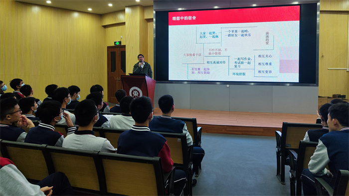 為了加強(qiáng)學(xué)校宿舍管理,提升住宿生的自我管理和自我約束能力,營(yíng)造良好的學(xué)習(xí)和生活環(huán)境,2023年2月5日晚上,中山市東區(qū)中學(xué)于報(bào)告廳召開本學(xué)期宿生會(huì)議,本次會(huì)議由德育處蔡昌盛主任主持,分男女生兩場(chǎng),宿管老師和住宿生參加。