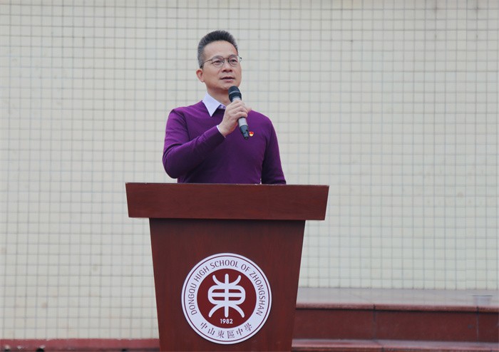 在雄壯的國歌歌聲中,五星紅旗冉冉升起,開學(xué)典禮正式拉開帷幕。飄揚(yáng)國旗下,新學(xué)期的書記第一課如約而至。東區(qū)中學(xué)黨總支書記、校長謝柏芳以《美好春天值得我們?nèi)σ愿啊窞轭}激昂開講。謝校長細(xì)致回眸三年以來的點(diǎn)滴,用心用情地分享了自身的觀察與思考。他從中國神舟航天員的團(tuán)圓“全家?!鄙钏紙A太空航天夢的奮斗路上,需有“功成不必在我”的境界和“功成必定有我”的擔(dān)當(dāng);從張藝謀導(dǎo)演的實(shí)干中透析我們需要做一個(gè)時(shí)刻準(zhǔn)備好的人,勉勵(lì)東中學(xué)子時(shí)刻準(zhǔn)備好自己的狀態(tài),穩(wěn)住學(xué)習(xí)節(jié)奏;從電視劇《狂飆》張頌文演員的成長之路辯證看待人的努力與天賦,鼓勵(lì)東中學(xué)子肯努力,敢突破。