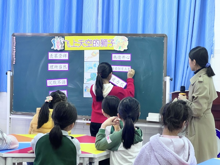 第一節(jié)課,莫家敏老師給我們帶來繪本課例《飛上天空的獅子》。在課堂上,莫老師積極引導,激發(fā)學生的閱讀興趣,調動學生課堂的參與度和積極性。借助繪本向學生們講授生活中要勇敢表達自己的想法,與家人、同伴、老師要理解與坦誠的道理。