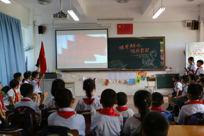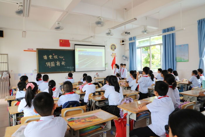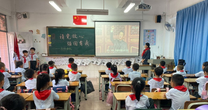 “請黨放心,強國有我”主題隊會。隊會課上,輔導員們從不同的視角,用少年兒童喜聞樂見的方式,以更具時代感和創(chuàng)新性的形式,設計了“黨的百年征程”、“我們的錚錚誓言”、“我們的美好未來”等豐富多樣的內(nèi)容。以播放和講解習近平總書記“七一”重要講話精神相關內(nèi)容,圍繞“強國有我”這一話題展開討論,引導隊員們學習黨史故事,了解黨的發(fā)展歷程和精神力量。少先隊員還用小提琴、街舞、唱紅色經(jīng)典歌曲、詩朗誦等多種方式表達對黨和祖國的熱愛之情和對美好未來的期盼。在一個個環(huán)節(jié)中,隊員們重新認識了黨的奮斗之路,在心中埋下了理想的種子,先輩們熊熊燃燒的信仰之火照耀著隊員們未來的征程。