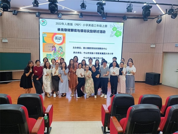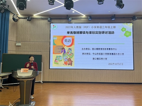金秋十月,碩果飄香,為了深化小學英語課堂的教學改革,提高課堂教學質量,幫助老師們整體把握課程標準,落實學科核心素養(yǎng),深度解讀教材,助力教師專業(yè)化成長,10月27日下午,經中山市港口鎮(zhèn)教育和體育事務中心主辦、中山市實驗小學教育集團大豐小學和港口鎮(zhèn)石特小學承辦的2022-2023學年度上學期小學英語三年級單元教材解讀與課標實施研討活動在大豐小學報告廳舉行。參加此次研討活動的有港口鎮(zhèn)小學英語中心教硏組組長蔡東琳老師,大豐小學黃艷冰校長、陳宇環(huán)副書記、馮秀珍主任、英語導師梁藝娟老師和陳媛芳老師,港口鎮(zhèn)各小學三年級英語教師及承辦單位全體英語教師,本次活動由大豐小學英語科組長陳秋霞老師主持。