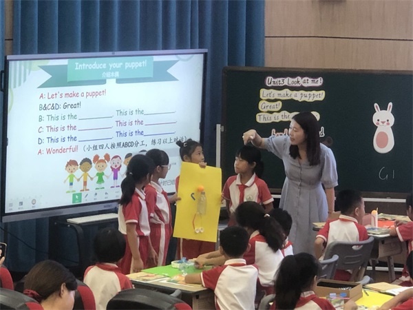 石特小學陳冰娜老師給大家呈現了一節(jié)詞句課——B Let's talk,Let's learn & Let's do部分。陳老師創(chuàng)設了Sarah和Mike一起做木偶的情境,將新授知識進行有效構建,通過舊物制作木偶活動培養(yǎng)學生在實踐中運用語言的能力、合作精神及環(huán)保意識。
